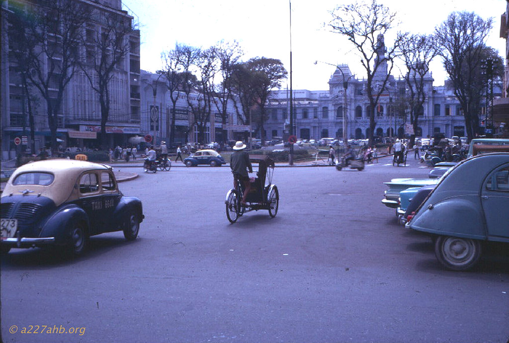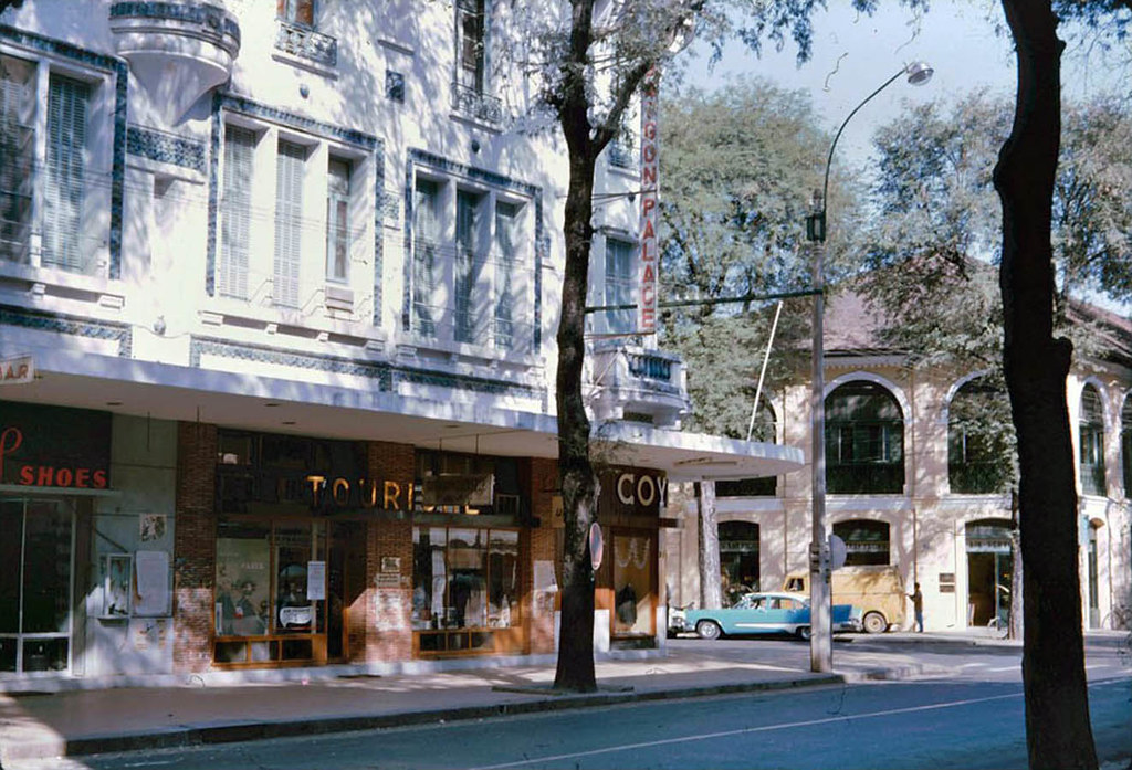 Saigon 1965 – Đường Trần Hưng Đạo, nhìn từ Plaza BEQ (135 Trần Hưng Đạo). Bên phải là Metropole Hotel.