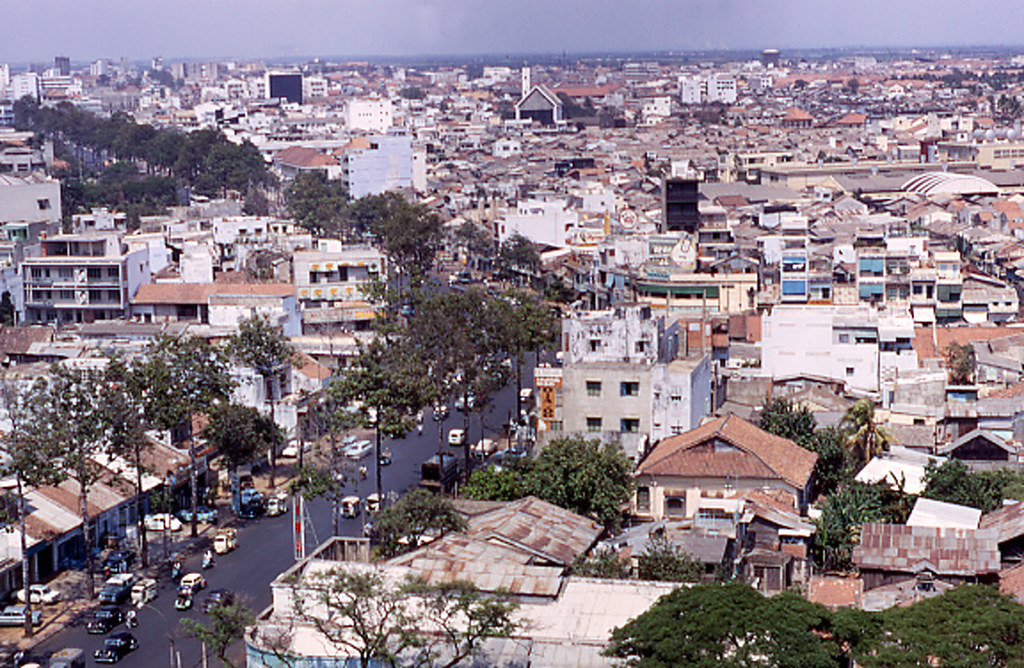 Saigon 1968 – Đường Lê Lai nhìn từ tầng 5 KS Walling trên đường Phạm Ngũ Lão. Photo by Brian Wickham