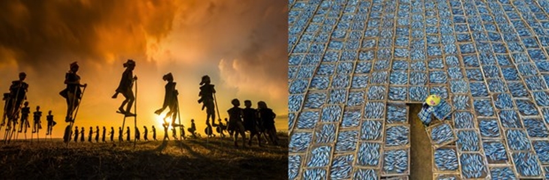 ”Những đứa trẻ nhảy múa theo cồng chiêng” (trái) và ”Phơi cá” giành huy chương vàng, bạc tại TIFA 2020. (Ảnh: Khánh Phan)
