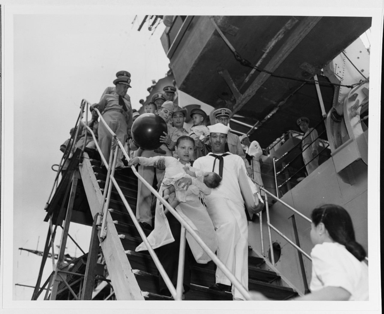 Hải Quân Mỹ trên tàu USS Estes (AGC-12) đưa người di cư đặt chân tới cảng Sài Gòn. (Hình: Naval History and Heritage Command)Liều chết ra đi