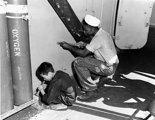 bé trai trong gia đình người di cư từ Bắc vào Nam giúp thủy thủ trên